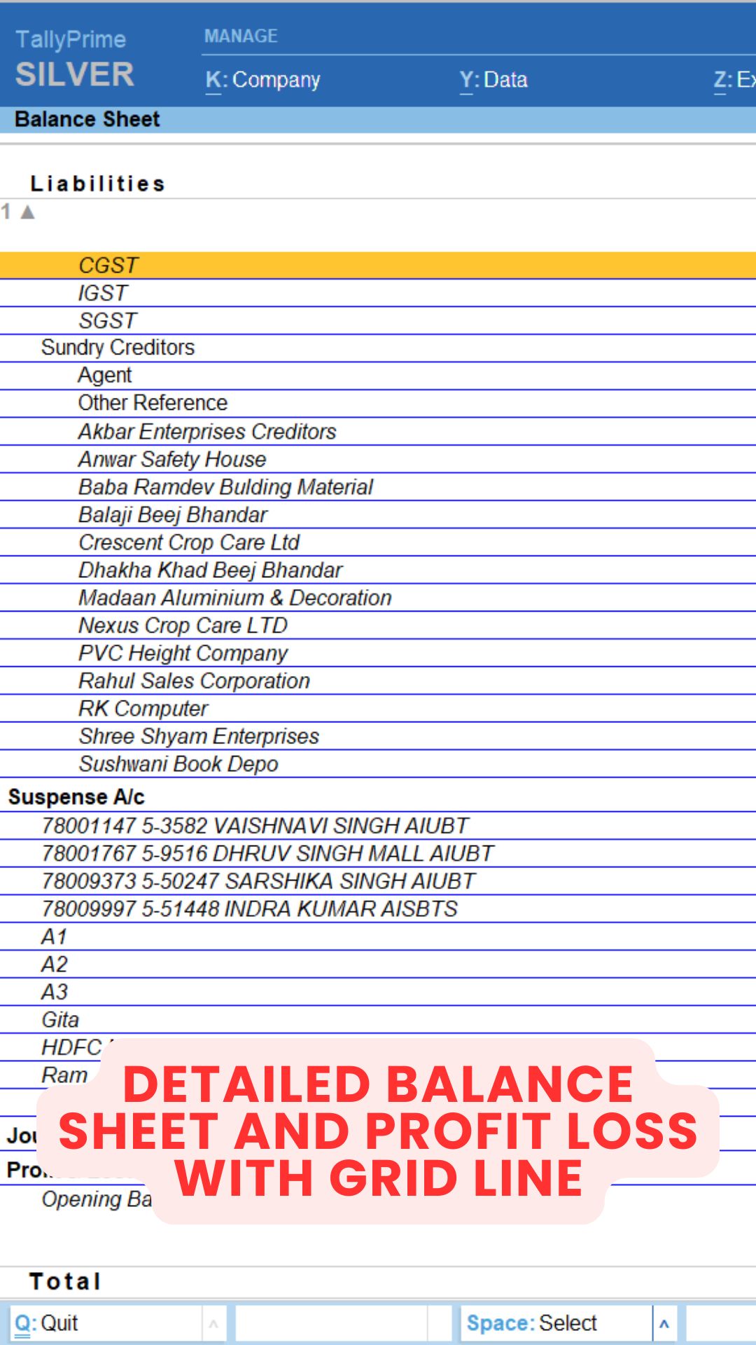 Detailed Balance Sheet and Profit Loss with Grid Line