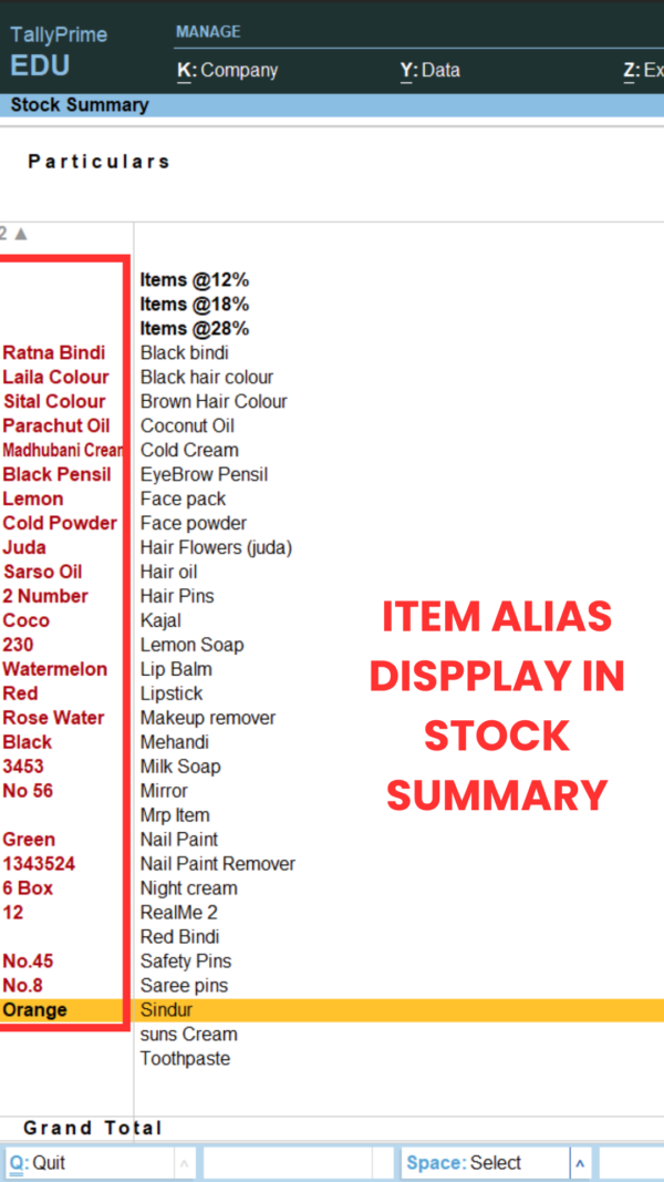 Item Alias Dispplay in Stock Summary