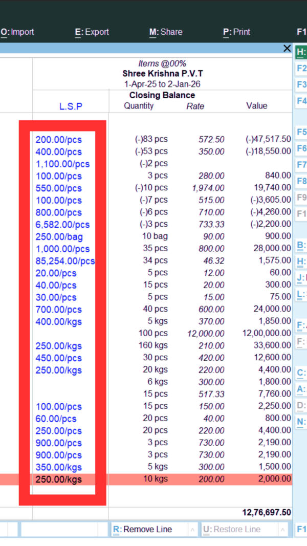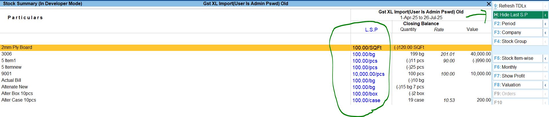 • Last Sale Price Display in Stock Summary TDL allows you to see the last sale price of each item in stock summary reports in Tally, making inventory management fast, accurate, and professional.