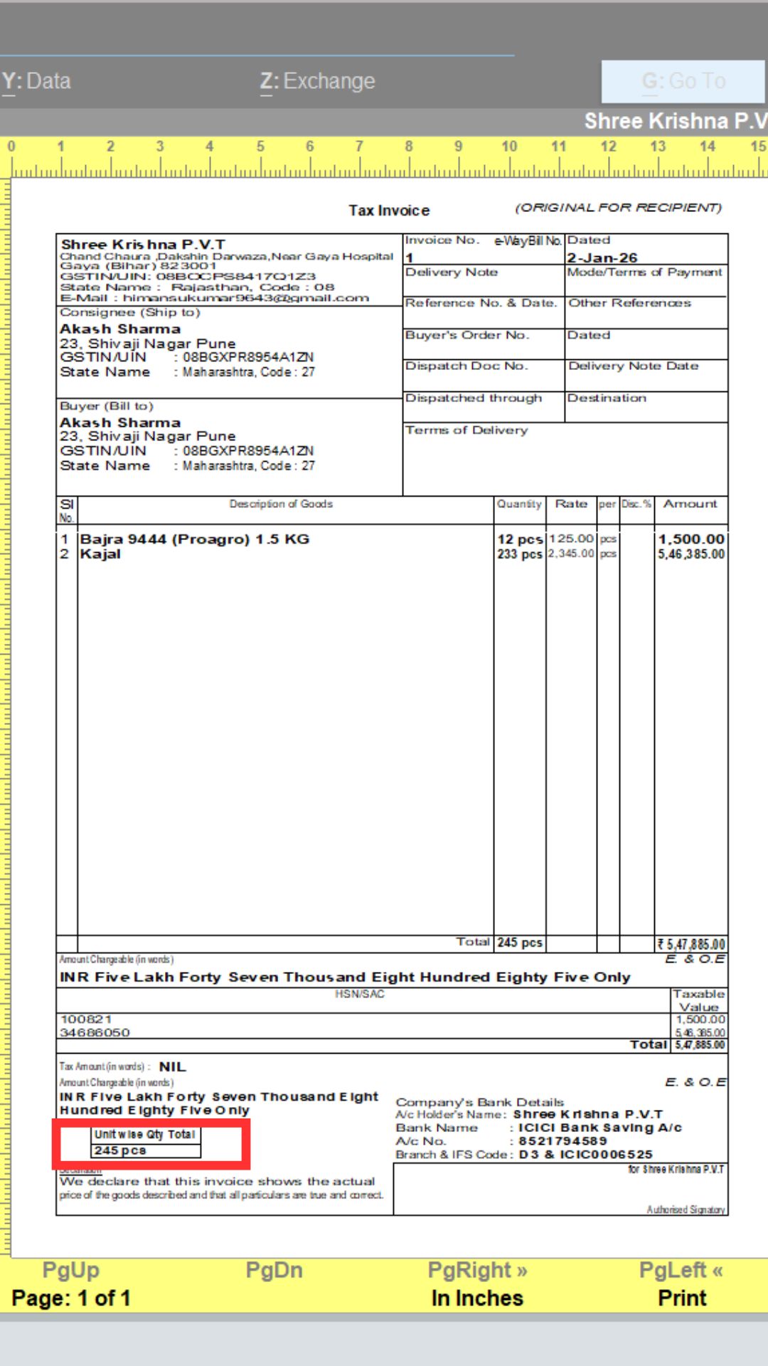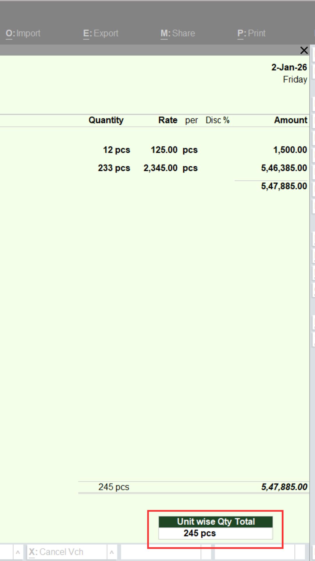Multiple Unit wise Quantity Total In Voucher Invoice Print